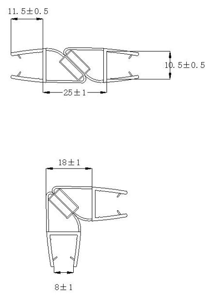 PVC Seal Glass To Glass, Black Magnet, 90/180DG, S-5711,F/10 mm Glass, 2,5 Mtr.