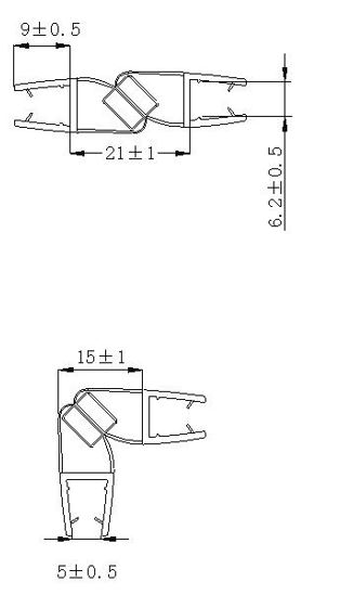 PVC Seal Glass To Glass, Black Magnet, 90/180DG, S-5711, F/6 mm Glass, 2,5 Mtr.