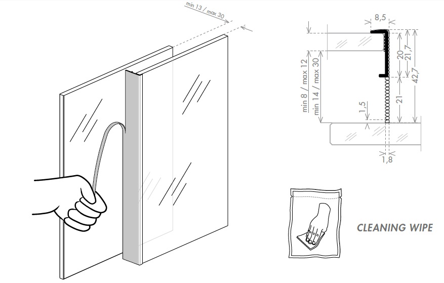 Transp. Adhesive PVC Profiles,F/Sliding Doors,5x3000mm, 8-14 mm Glass, To be used For Sliding Doors