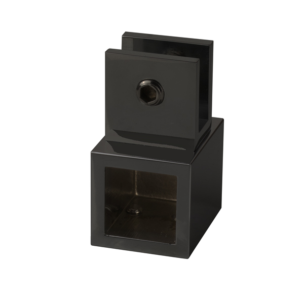 Bar To Glass Bracket, F/19x19mm Square Tube, Black Finish, 8 -10mm, Closed Bar Hole