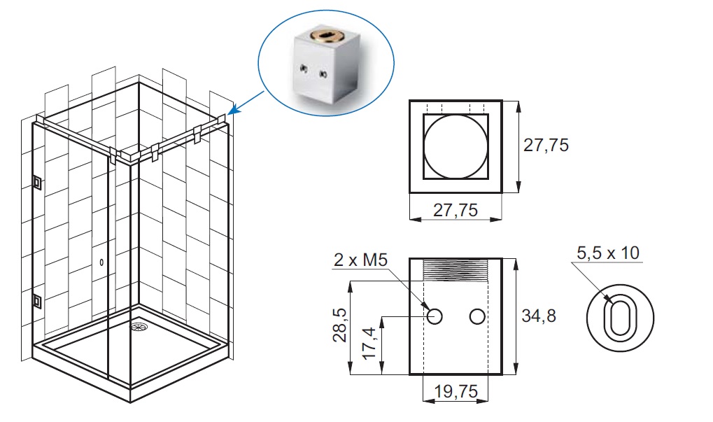 Bar To Wall Bracket, F/19x19mm Square Tube, CPL