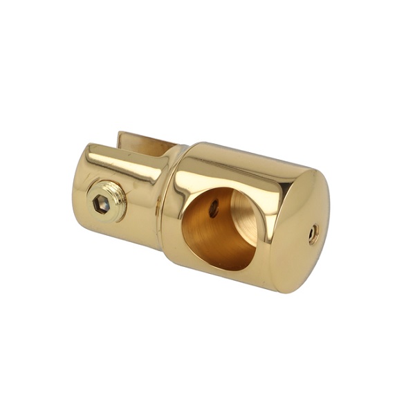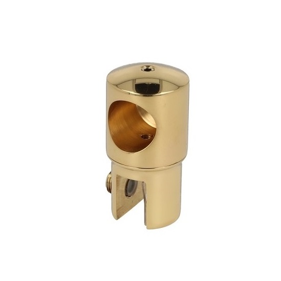 Bar To Glass Bracket, F/ø19mm Tube, Polished Brass, 8-10mm. Glass, W/Closed Bar Hole