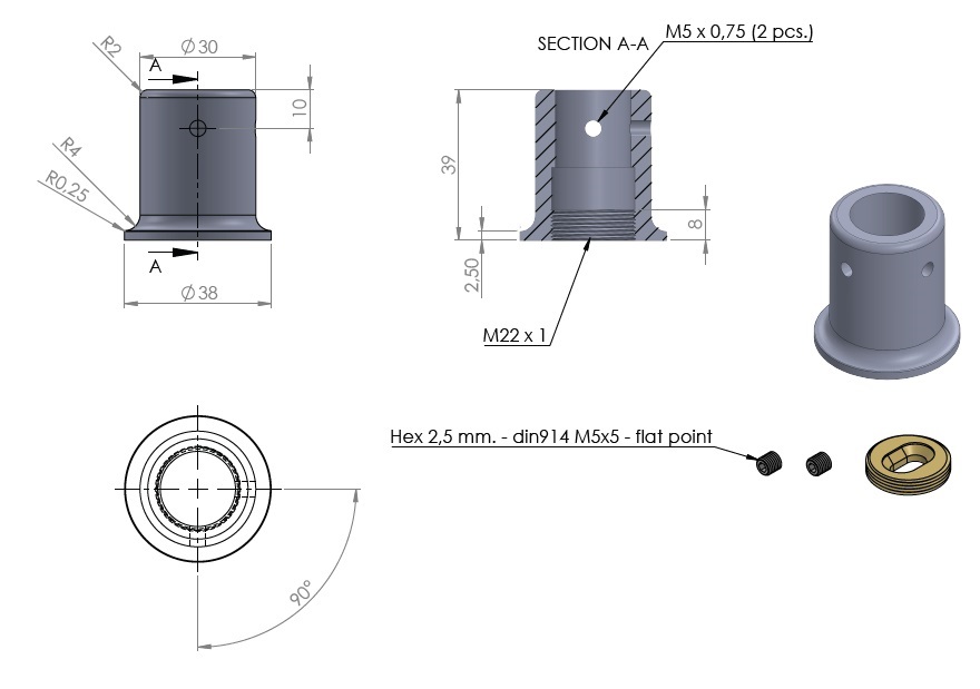 Bar To Wall Bracket, F/ø19mm Tube, Flat Back, Brushed Brass