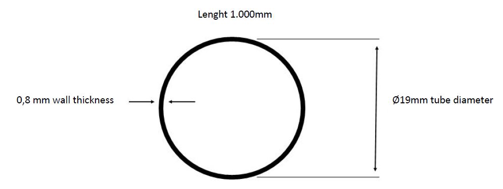 SS-304 Tube ø19x1000mm, 0,8mm Thickness, Polished Brass