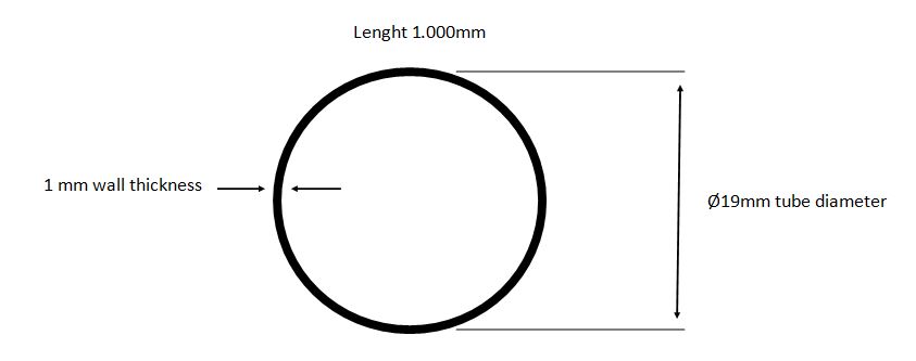 SS-304 Tube ø19x1000mm, 1,0mm Thickness, Brushed Brass
