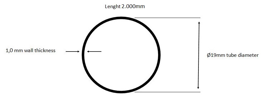 SS-304 Tube ø19x2000mm, 1,0mm Thickness, Black Finish