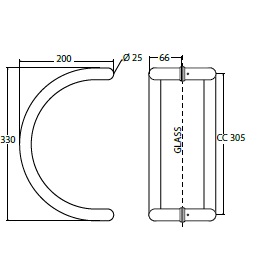 Door Handle "Mosel" SS304 Brushed, ø25x330mm, cc 305mm, 8-12mm Glass Thickness