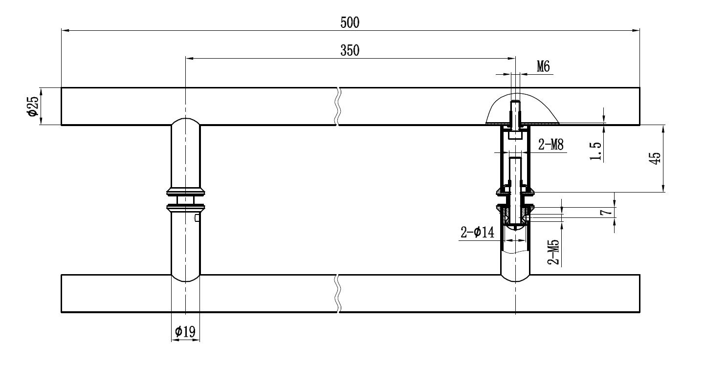 Door Handle "Oder" SS304 Black Finish, ø25x500mm, cc 350mm, 8-12mm Glass Thickness, Bore: ø12mm