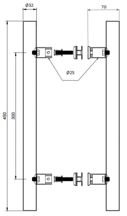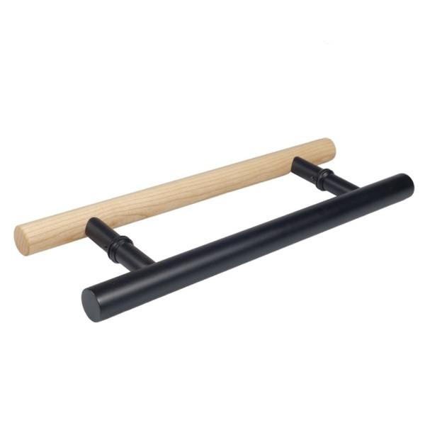 Sauna Door Handle "Drava" Matt Black, ø32x450mm, cc 300mm 8-12mm Glass Thickness, Bore: ø12mm; Beech Wood - lacquered + SS304 Matt Black Color