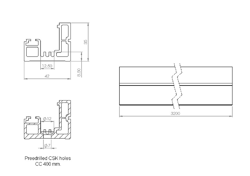 Black Anodized Glas Wall Profile, 3200mm, F/"Zapp",8mm Glass