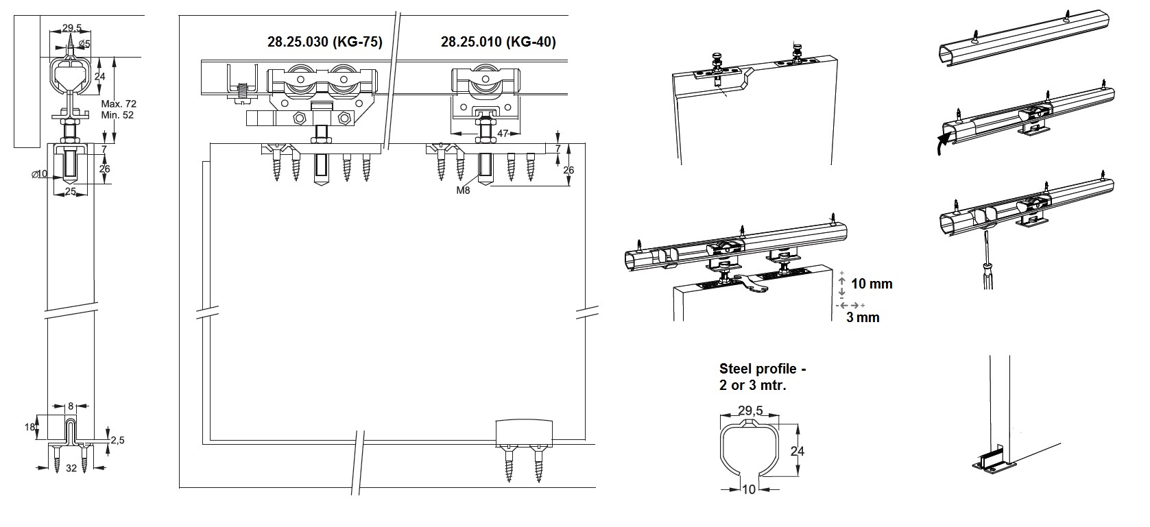 Sliding Door System KG-75, W/Screws & Manual, Max 75KG