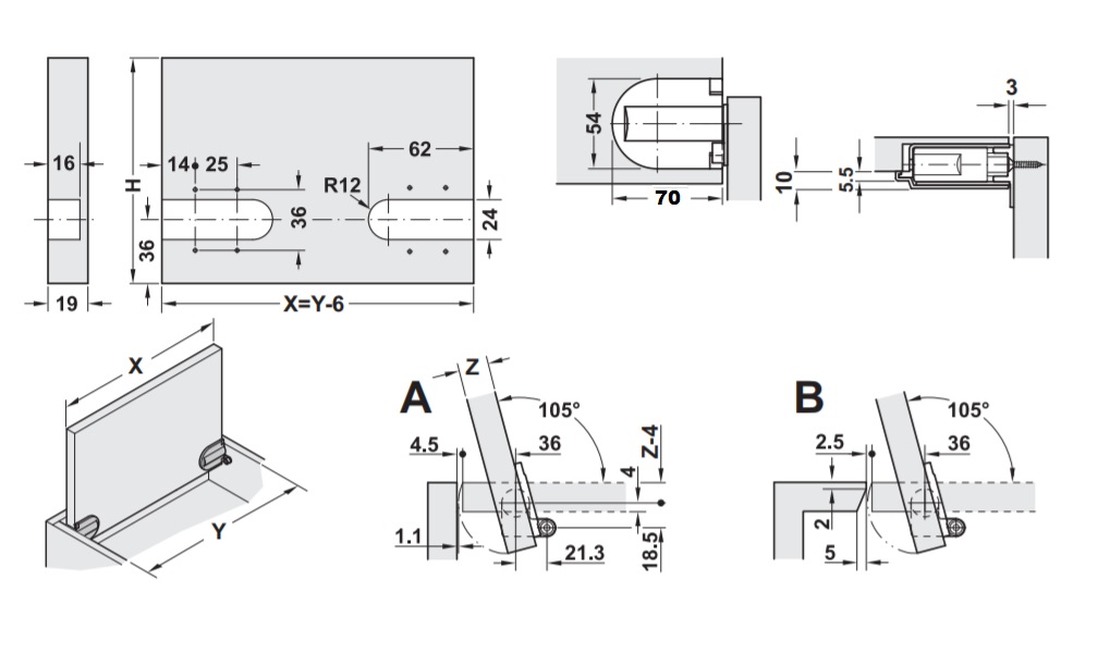 Lid Hinge, Soft Close, Black, Left+Right, 4-10 KG, 105 DG Opening