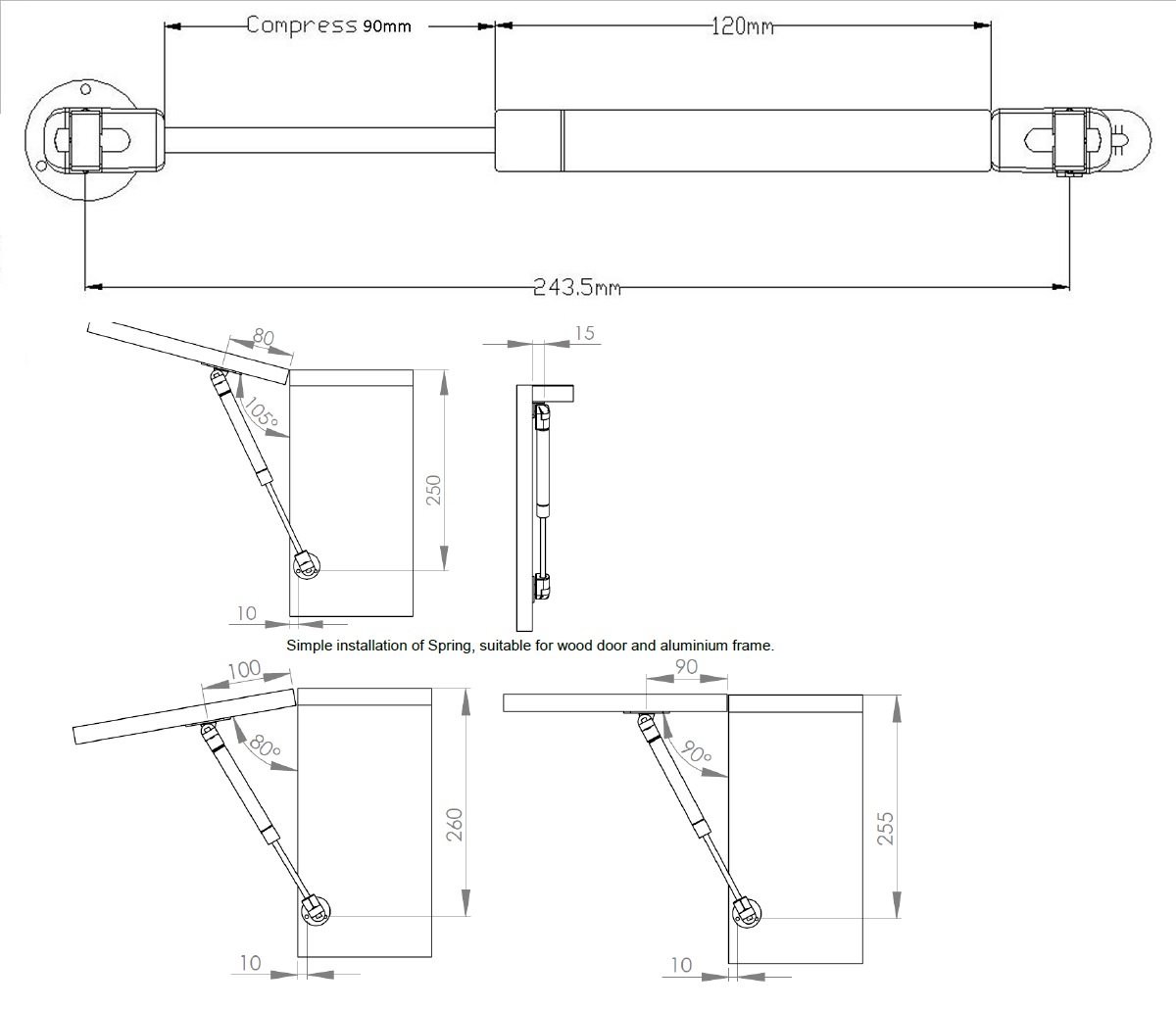 Pneumatic Exp. Drop Down Spring,100N, SISO Logo,Steel-Silver With Brackets