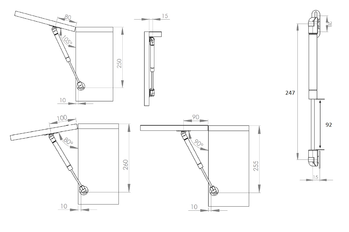 Pneumatic Exp. Spring,60N, SISO Logo,Steel-Silver,W/Brackets