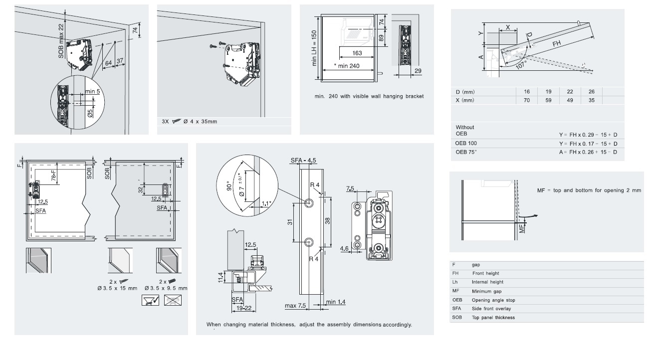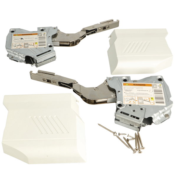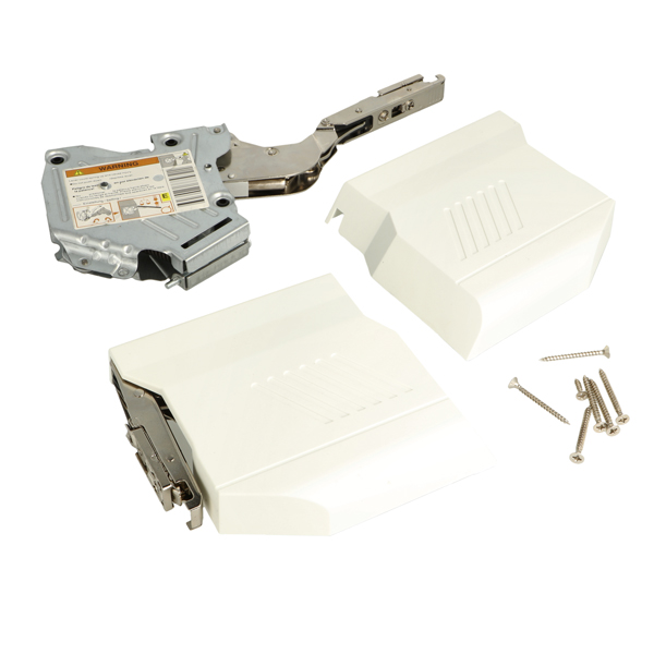 Flap Stay "TIP TOP", 107DG Opening, White Covers, 5KG Load Capacity, Max. 600mm Cabinet Width, Min. 240mm Cabinet Depth, 150-450mm Cabinet Height, Soft Closing, Adjustable Closing Force, (1 Pair = Right+Left) No Extra Hinges needed