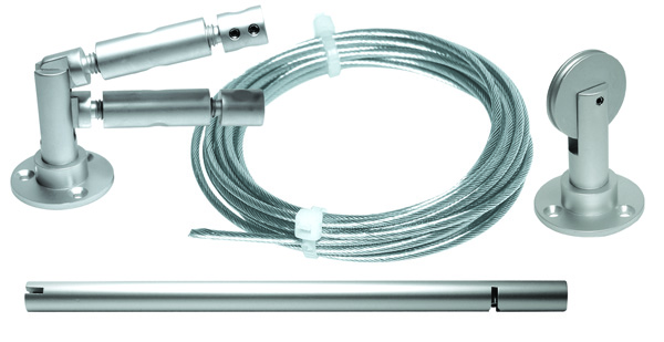 Cable Shelf Kit F/Wall Mounting, Alu, Anodized, W/2x4 Meters ø3mm SS Wire, 2xTop Fixings & 2 Bottom Fixings W/Spring Tension & 4xShelf Sticks (Shelf Holder To Be Bought Separately). Max 20 Kg. Shelf