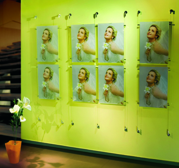 Cable Sign System F/Wall Mounting, Alu, Anodized, W/2x2 Mtr. Meters Ø1,5mm, SS Wire, 2 x Top Fixings & 2 Bottom Fixings w/Spring Tension, F/A1,A2,A3 & A4 Signs (Sign Holder To Be Bought Separately)