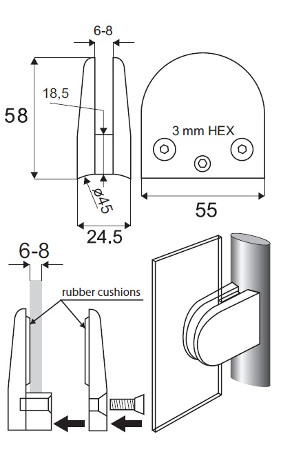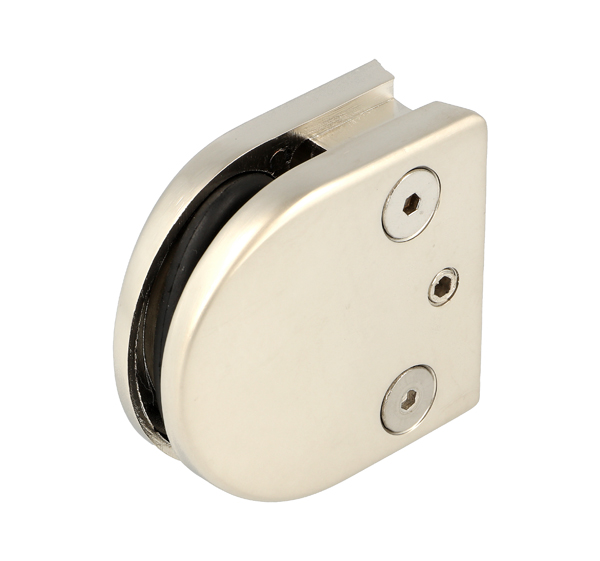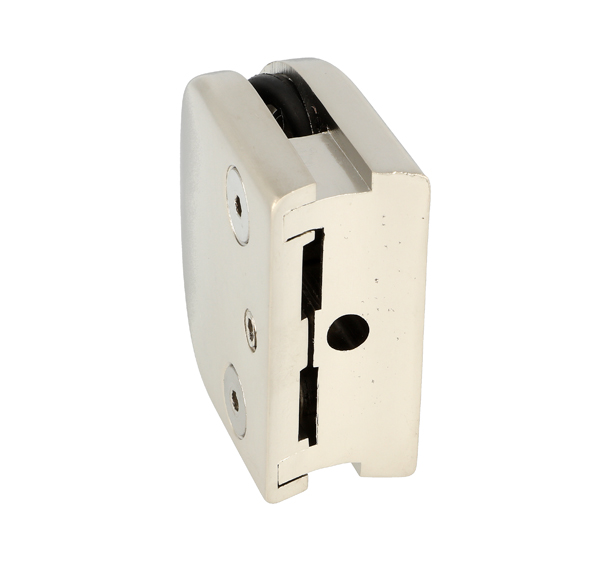 Glass Clamp, "Large", Zamak,Matt NPL,Bent Tube ø45mm,F/6-8mm Glass Thickness