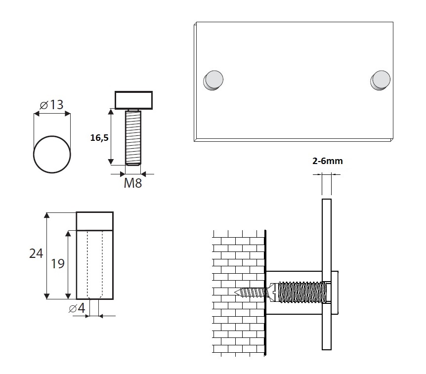 Sign Board Screw ø13x19mm, Brass, CPL, W/2 Transparent Washers