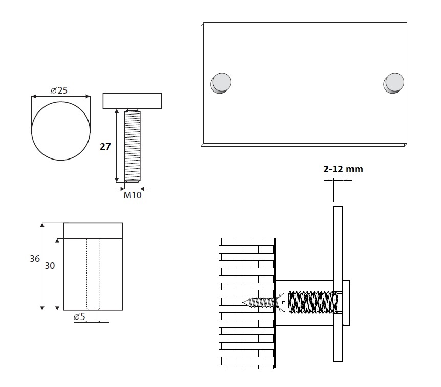 Sign Board Screw ø25x30mm, Alu, Blue, M10, W/2 Transparent Washers