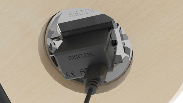 USB 2,0 Plug-In Hub, F/Cable Grommet "Soul", Black Plastic House, 4 USB Slots, 1,5 Meter Cable, With DK Logo