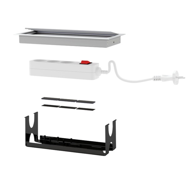 Power Plug Tray f/Forro & Jive,83,2x250,9x74,4mm,Steel,Black , Inner Measurements: 82x240x65mm (H/L/W), Incl. 3 Pieces of Velcro Tape