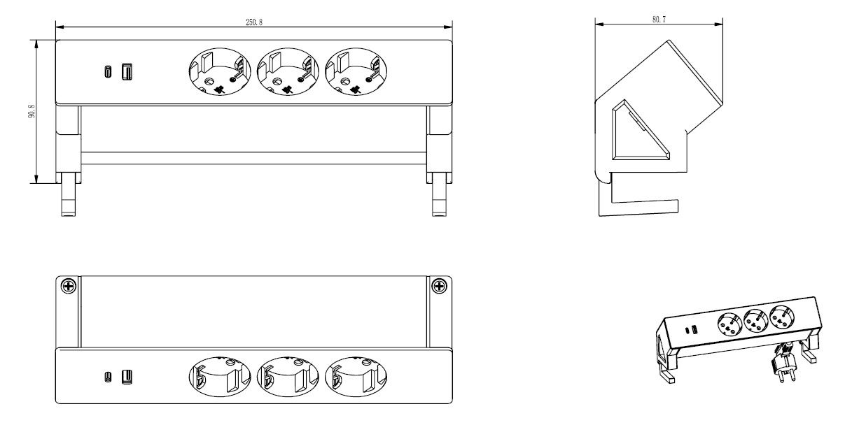 Power Socket, White,1 EU Sockets+2 USB Chargers (A+C) 20W Max, with 180 cm EU Power Cable, 16A 230V~,Max3680W, USB Port Spec: 1A1C PD20W Type C Single Port Output: 5V 3A/ 9V 2.22A/12V 1,67A. Type A Single Port Output: 5V 3A/9V 2A/ 12V 1.5A