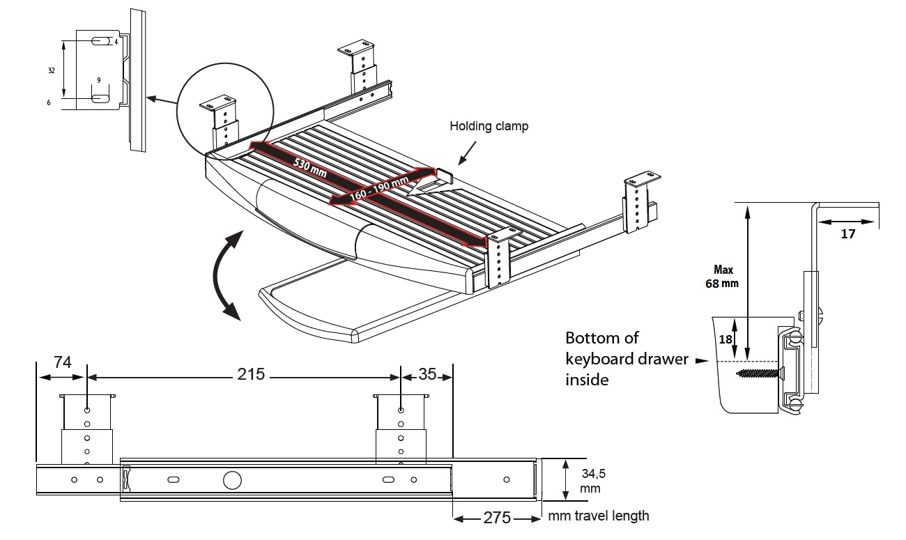 Keyboard Drawer "Profi", Black, W/Mouse Pad & Pencil Box