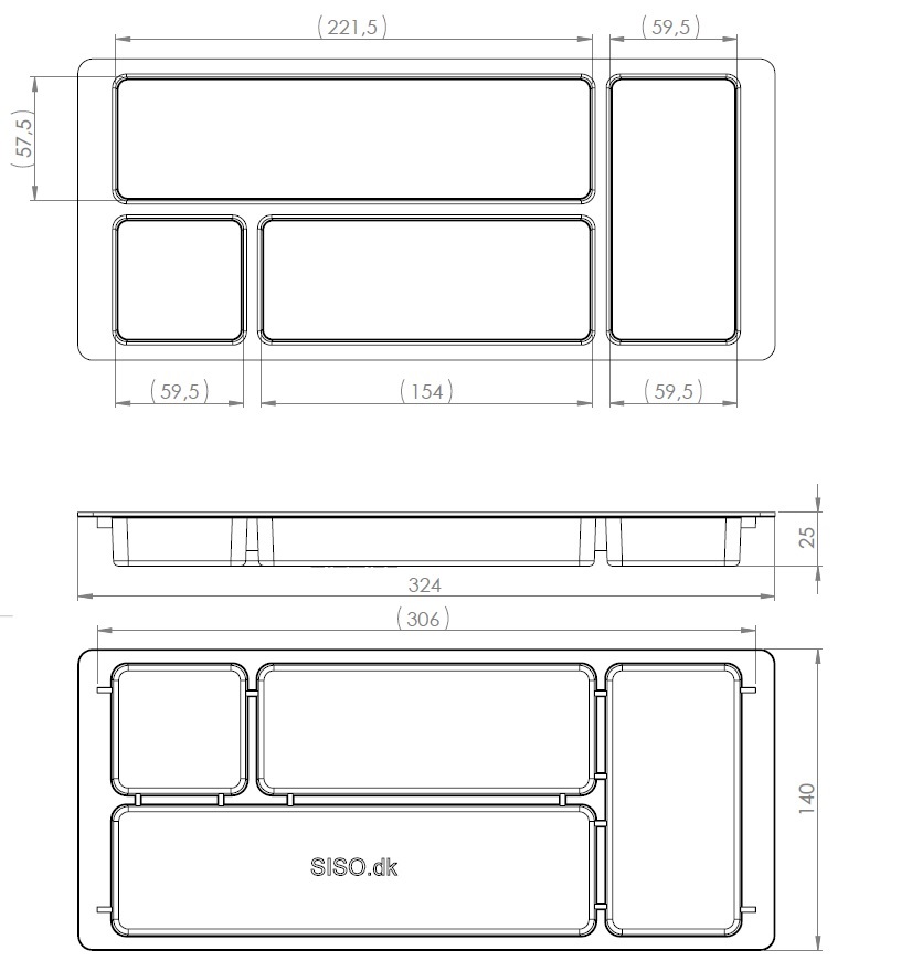 Pencil Tray, Model F-815-D, Black PP, 324x140x25mm, Inlay 128x292x23mm