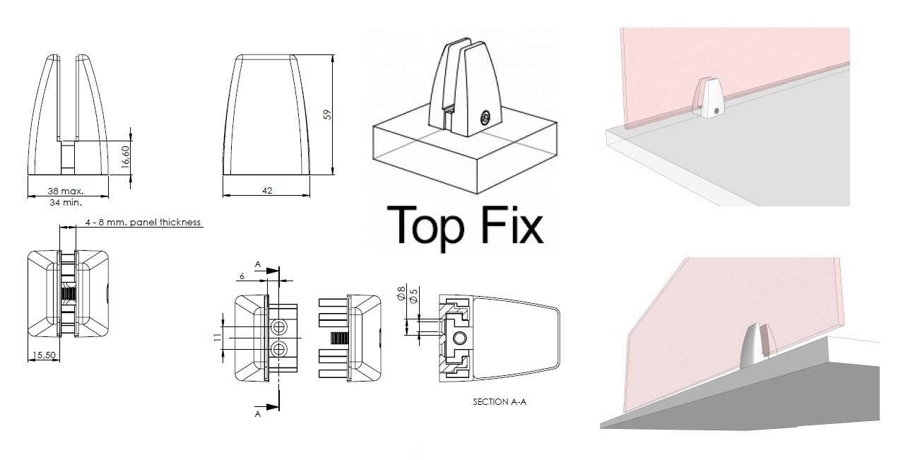 Partition Panel Clamp, Top-Fix, Alu, Silver Painted,F/4-8mm Panel Thickness