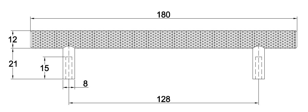 Bar Handle "House", cc 128mm, ø12x180mm,H:33mm,SS-Look,Brass Material, Incl. 2 pcs of M4x25mm. SS-Look Screws