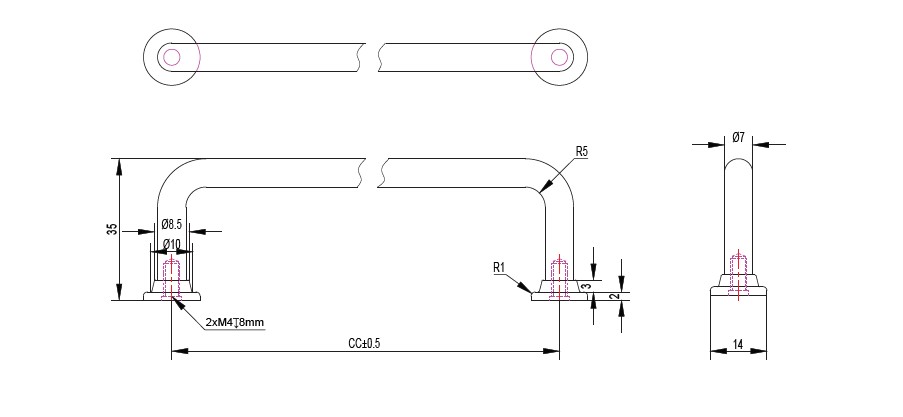 D-Handle "Diana", Brass, cc 160mm, ø7x174mm, SS-Look, H 35mm , With Screws