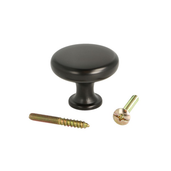 Knob "Juno" Zamak, ø33x26mm, Black, Incl. 1 Pcs. M4x25mm Screw + M4x40mm Hangerbolt
