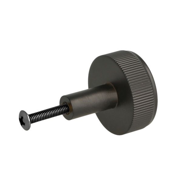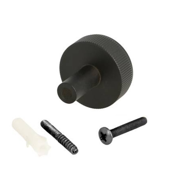 Knob "Justa" ø32x12mm, H:33mm, Black Finish, Brass Material, 1 Pcs. of M4x25mm. Black Screw + 1 Pcs of M4x30mm 15/15mm. Hangerbolt F/Wall Mounting
