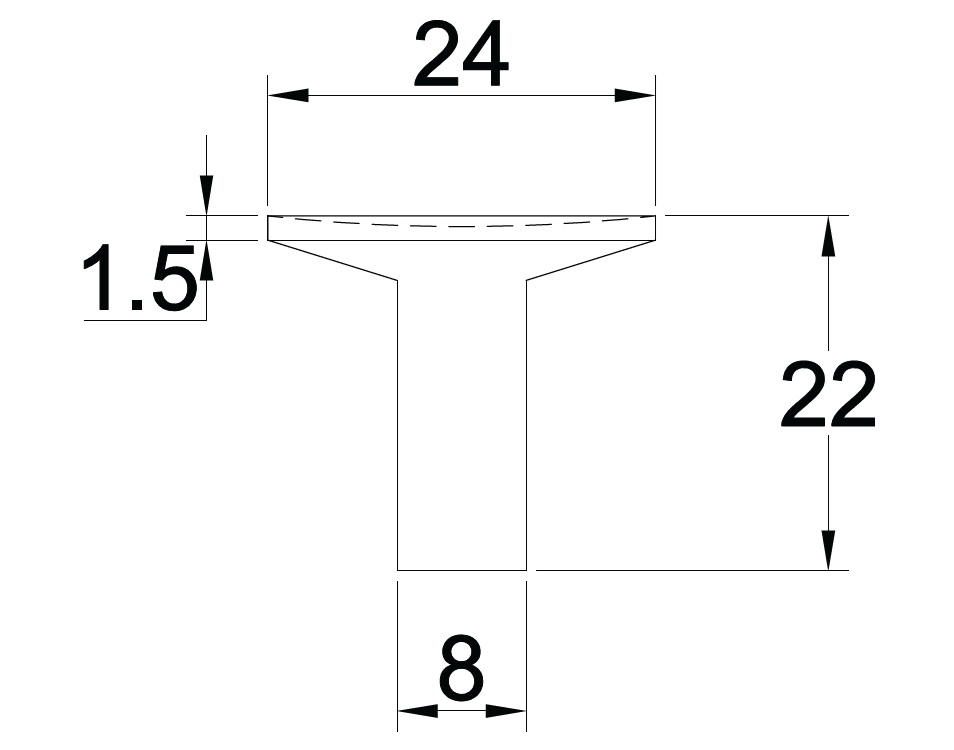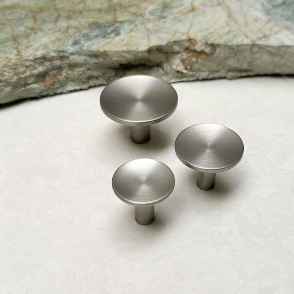 Knob "Maia" Brass, ø24x22mm, SS-Look, Lacquered, Incl. 1 Pcs. of M4x25mm. Screw + 1 Pcs of M4x30mm 15/15mm. Hangerbolt F/Wall Mounting