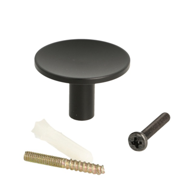 Knob "Maia" Brass, ø35x23mm, Matt Black, Incl. 1 Pcs. of M4x25mm. Screw + 1 Pcs of M4x30mm 15/15mm. Hangerbolt F/ Wall Mounting