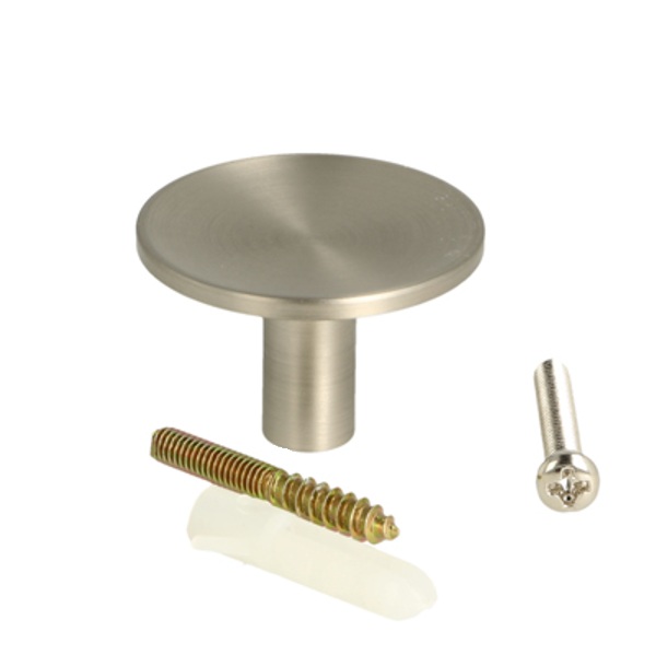 Knob "Maia" Brass, ø35x23mm, SS-Look, Lacquered, Incl. 1 Pcs. of M4x25mm. Screw + 1 Pcs of M4x30mm 15/15mm. Hangerbolt F/Wall Mounting