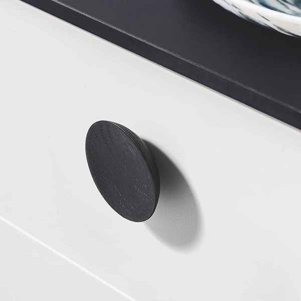 Knob "Quail", ø64x18mm, Oak - Black, W/Screw M4x22mm