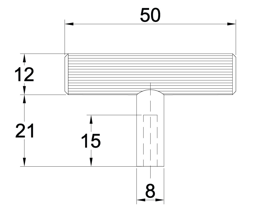 T-Handle "Justa", ø12x50mm, H:33mm, Satin Brass, Brass , Incl. 1 pcs of M4x25mm. Screw