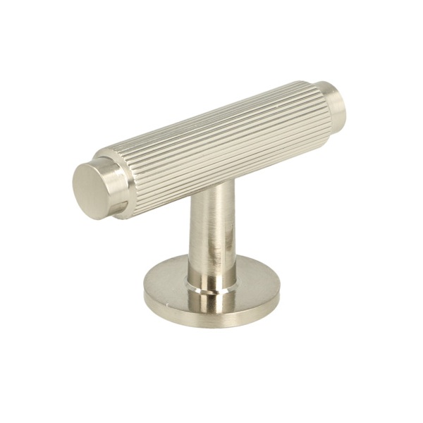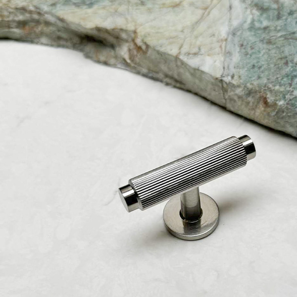 T-Handle "Justa" ø13x56mm, H:36mm, SS-Look, Brass Material, Incl. 1 Pcs of M4x25mm. Screw + 1 Pcs of M4x30mm 15/15mm. Hangerbolt