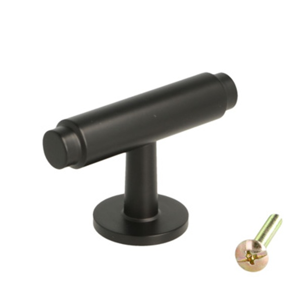 T-Handle "Nox" ø13x56mm, H:36mm, Black Finish, Brass Material, Incl. 1 Pcs of M4x25mm. Screw + 1 Pcs of M4x30mm 15/15mm. Hangerbolt