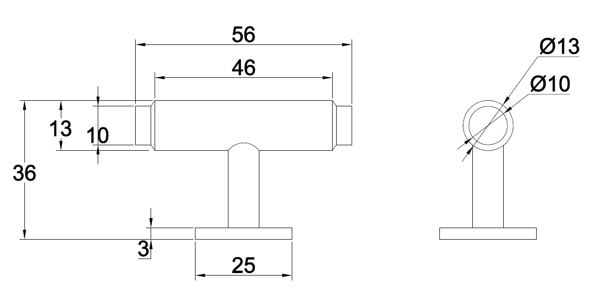 T-Handle "Nox" ø13x56mm, H:36mm, Satin Brass, Brass Material, Incl. 1 Pcs of M4x25mm. Screw + 1 Pcs of M4x30mm 15/15mm. Hangerbolt
