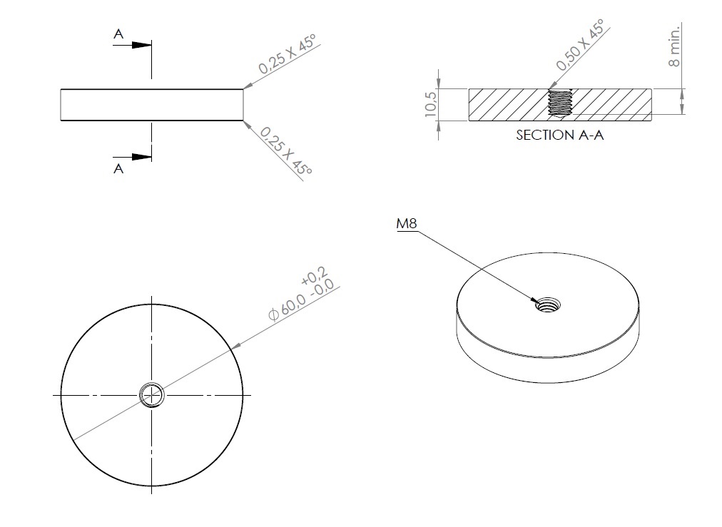 SS304 UV Disc F/Leg ø60 x 10.5mm, W/8mm Hole (W/O Leg) (Sold pr. piece)