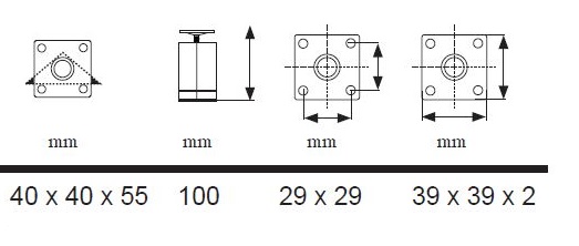 Alu Leg Tria 40x40x55mm, H 150mm PL 39x39x2mm, cc 29x29mm Stem: M10X27mm ,Silver Sprayed Finish