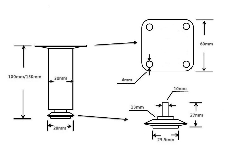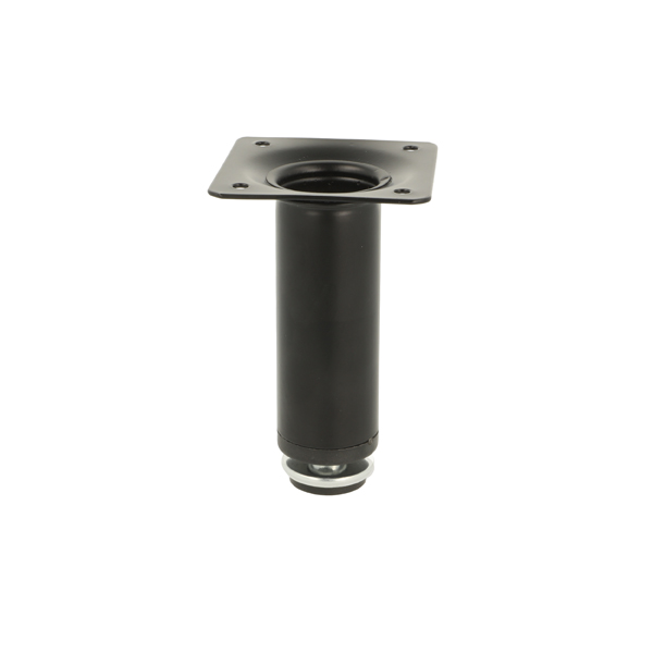 Metal Leg "Anna", ø30x100mm, Matt Black, W/Plate 60x60mm,cc: 44x44mm, W/Adjustable Glide w/Hex Nut, 10mm Height Regulation