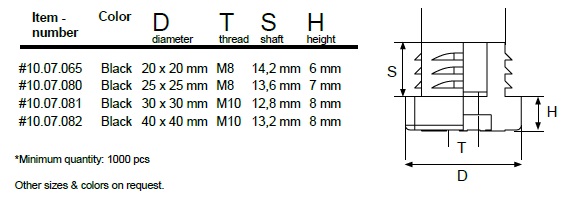 Insert Glide F/Square Tube,20x20mm,W/M8 Hex Nut,PE,Black