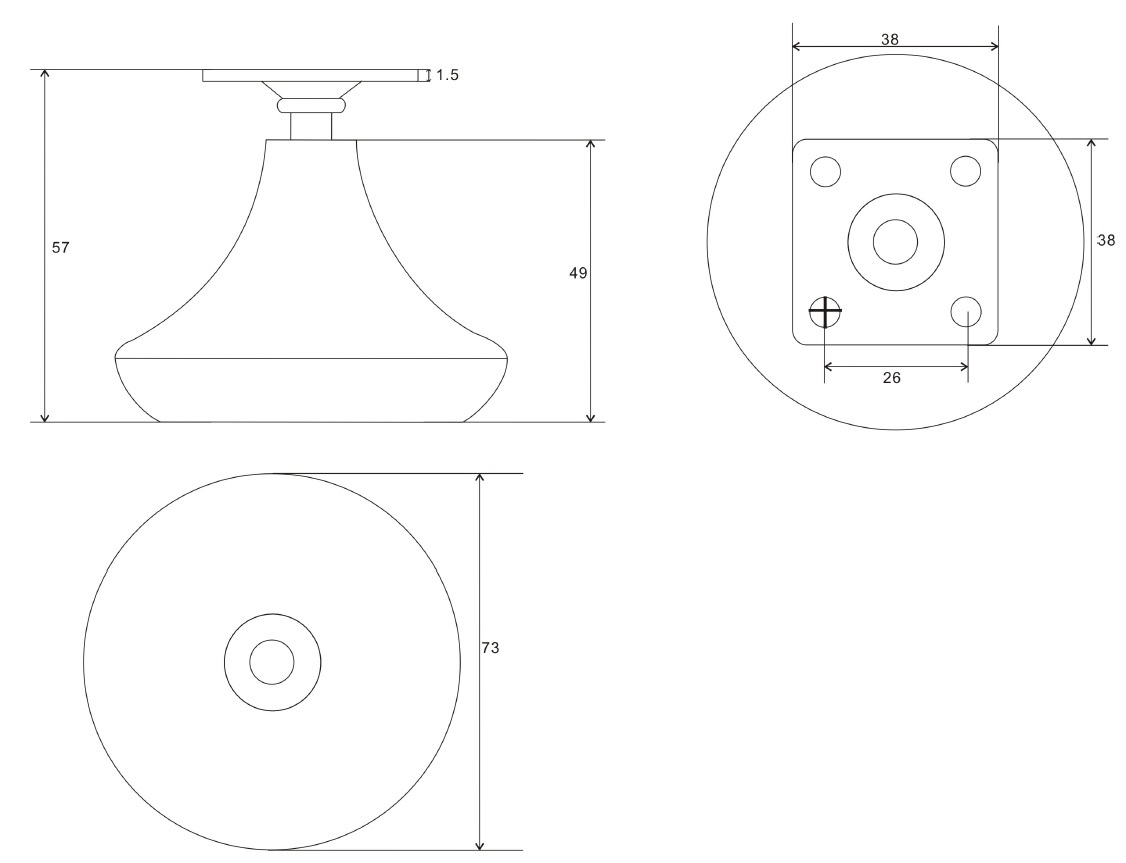 Jumbo Glide 7373 Matt Black, ø73mm, H 57mm, W/PL 38x38mm, cc 26x26mm