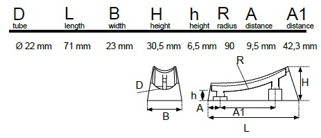 Tube Slide F/Curved Tubing ø22mm,"Screw-on",PE,Black