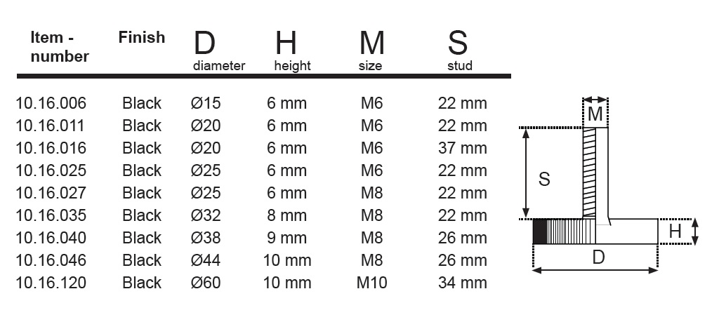 Adjust. Glide Alpha, ø15mm, Black PA, Stud M6 x 22mm