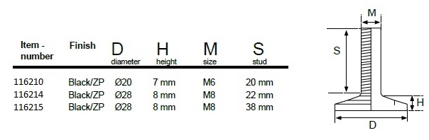 Adjust. Glide Mau, ø28mm, Black Base, ZPL Shell,Stud M8x22mm